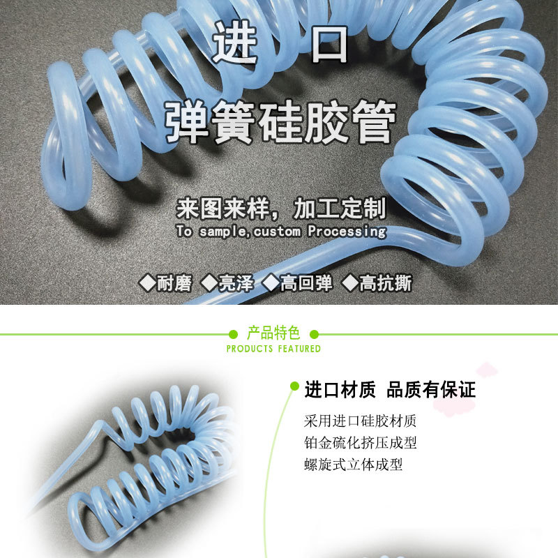 擠出硅橡膠制品產(chǎn)品名稱:進(jìn)口彈簧硅膠管