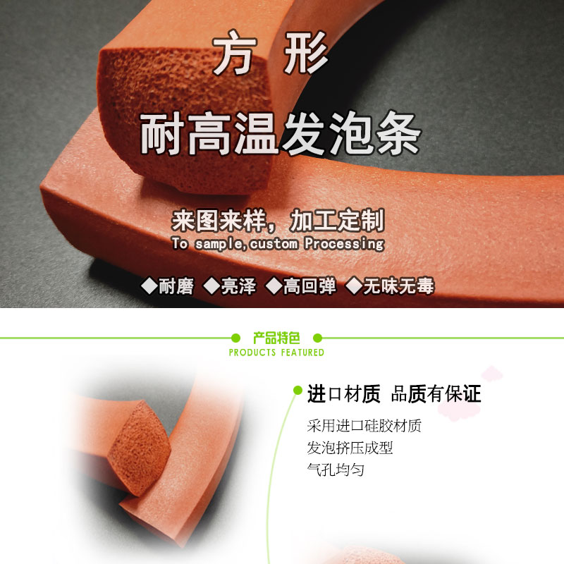 發(fā)泡硅橡膠制品產(chǎn)品名稱:方形耐高溫發(fā)泡條