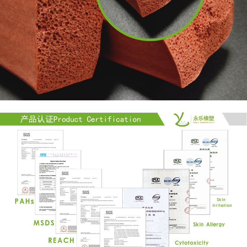 產品認證:發(fā)泡條類可達到食品FDA,發(fā)泡板ROHS等