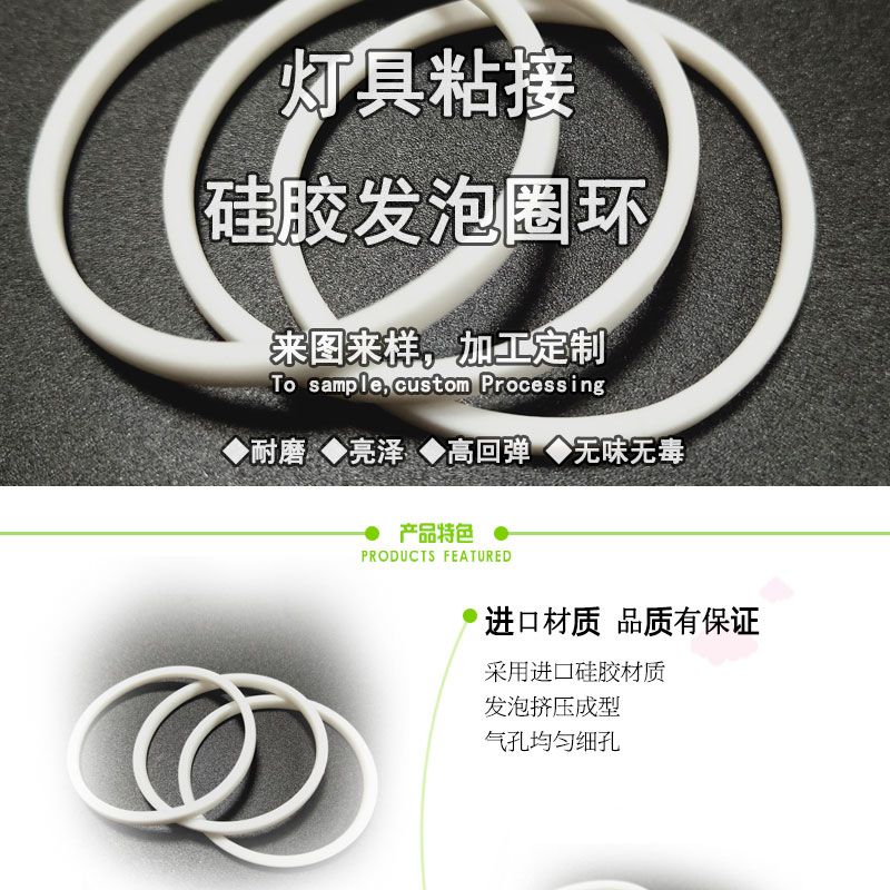 發(fā)泡硅橡膠制品產(chǎn)品名稱: 燈具粘接硅膠發(fā)泡圈環(huán)
