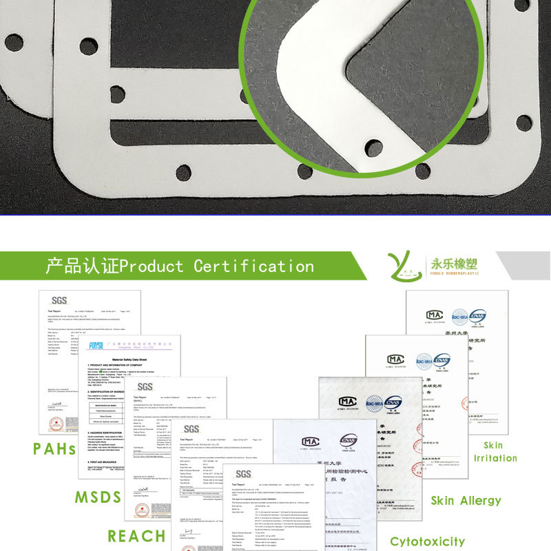 產(chǎn)品認證:發(fā)泡條類可達到食品FDA,發(fā)泡板ROHS等
