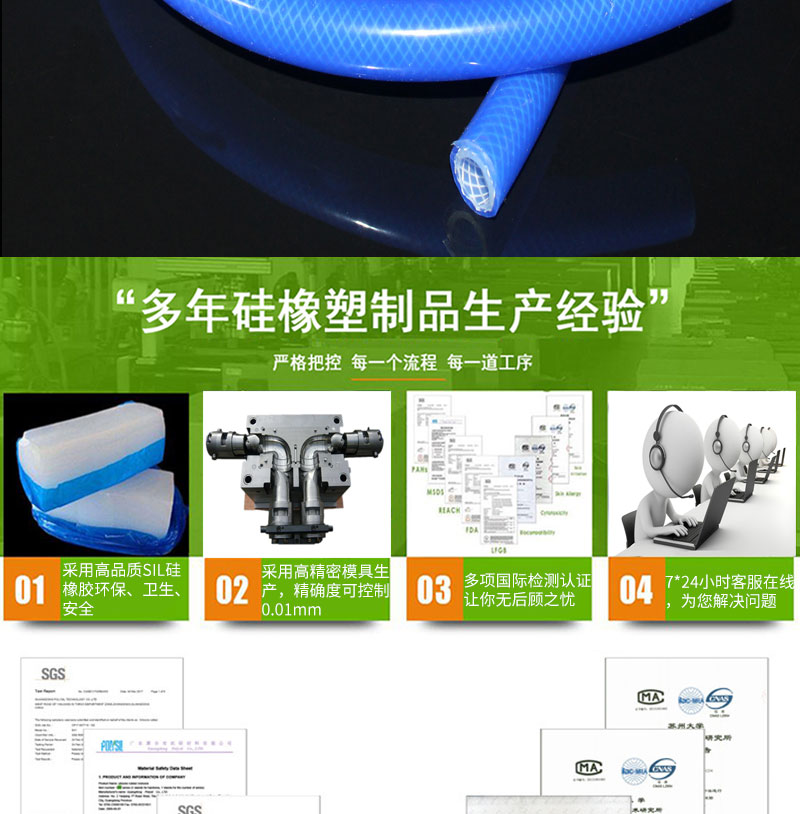 編織硅橡膠制品產(chǎn)品名稱:硅膠編織增壓管