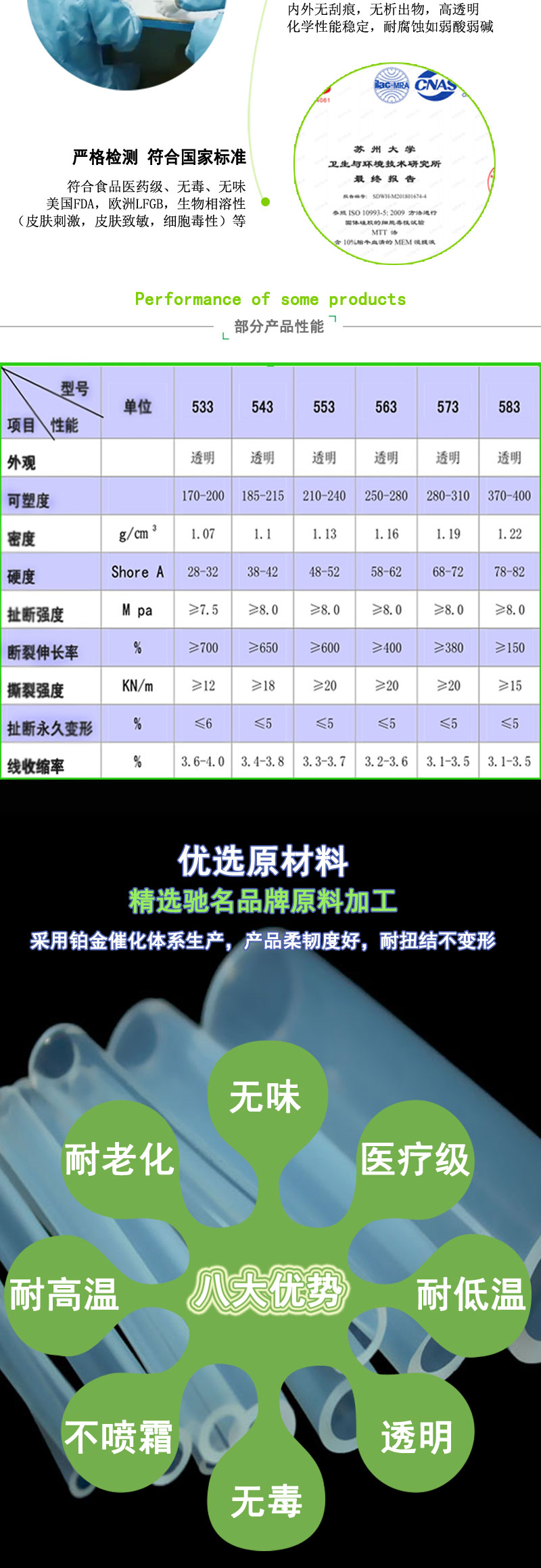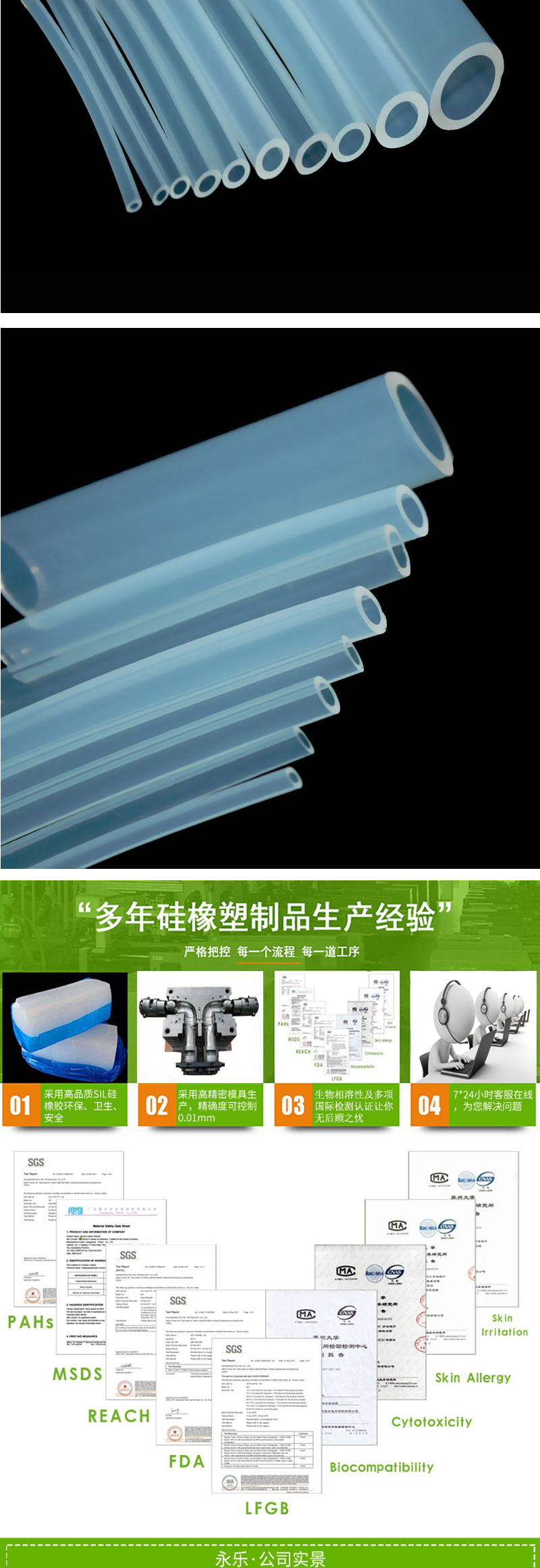 本公司通過ISO9001體系,生產(chǎn)鉑金硅膠管,蠕動(dòng)泵硅膠管,食品醫(yī)療模壓硅膠成型件及硅橡塑制品密封組件定制生產(chǎn)等。以“研制更好的產(chǎn)品,提供更好的服務(wù),創(chuàng)建更好的形象”三個(gè)更好作為競爭策略,不斷進(jìn)行變革和管理創(chuàng)新,增強(qiáng)企業(yè)綜合競爭力。