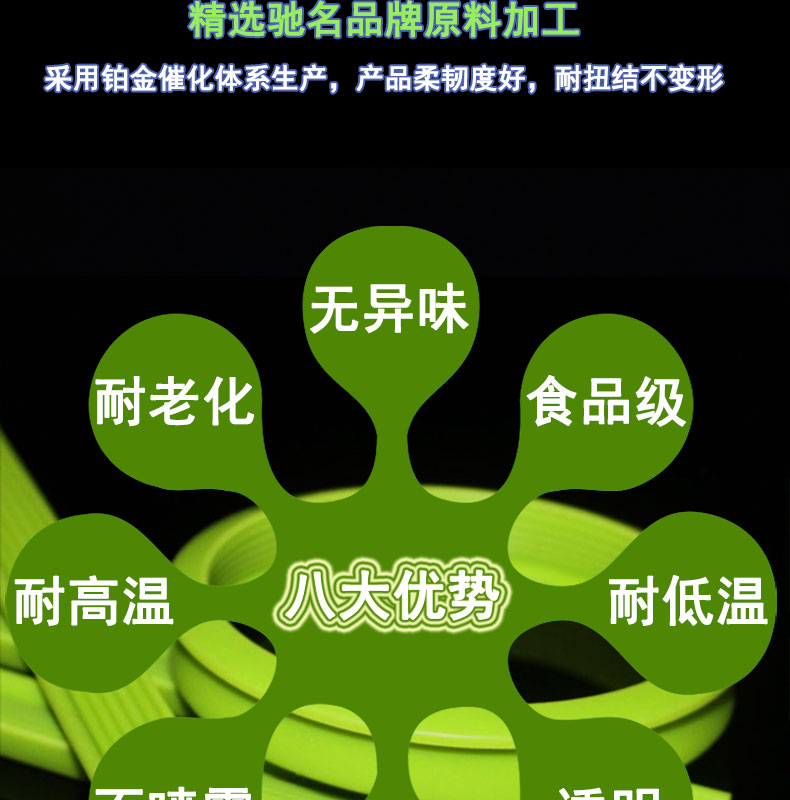 食品級(jí)粘接密封圈:采用進(jìn)口硅膠材料,設(shè)有專業(yè)粘接部門,負(fù)責(zé)硅膠密封條的剪切與粘接,粘接口牢固,可承受5KG拉力;常規(guī)硬度60度(邵氏硬度值30-90度);耐溫范圍廣(-50~+280℃),可以適應(yīng)高、低溫設(shè)備需求,并耐老化。常規(guī)PE袋+紙箱包裝;產(chǎn)品符合SGS、FDA、LFGB等標(biāo)準(zhǔn);用于飯盒、保鮮盒、米桶、電池盒,餐盒,儲(chǔ)物盒等。