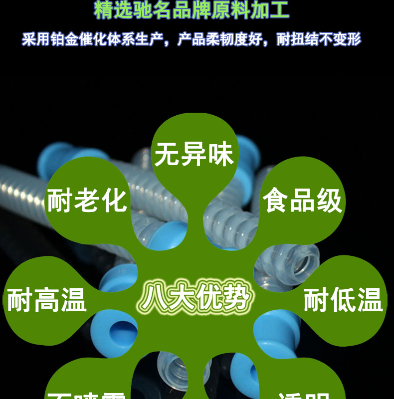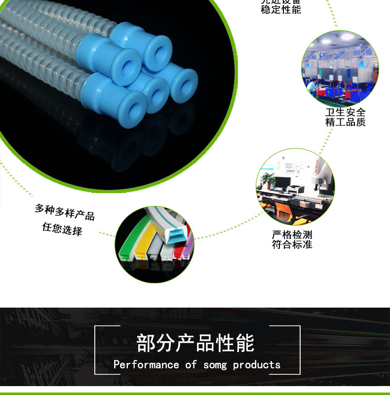采用進(jìn)口硅膠材料,模壓成型,內(nèi)壁平滑,壁厚均勻;常規(guī)60度(邵氏硬度值20-80度);耐溫范圍廣(-50~+280℃),可以適應(yīng)高、低溫設(shè)備需求,并耐老化。常規(guī)PE袋+紙箱包裝,特殊要求可按客戶標(biāo)準(zhǔn);產(chǎn)品符合SGS、FDA、LFGB、生物相溶性等;用于灌裝機、蠕動泵專用、醫(yī)療醫(yī)用器械、輸液泵等。