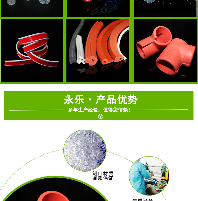 本公司通過ISO9001體系,生產(chǎn)鉑金硅膠管,蠕動泵硅膠管,食品醫(yī)療模壓硅膠成型件及硅橡塑制品密封組件定制生產(chǎn)等。以“研制更好的產(chǎn)品,提供更好的服務,創(chuàng)建更好的形象”三個更好作為競爭策略,不斷進行變革和管理創(chuàng)新,增強企業(yè)綜合競爭力。