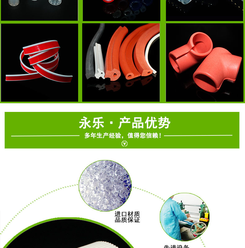 本公司通過ISO9001體系,生產(chǎn)鉑金硅膠管,蠕動泵硅膠管,食品醫(yī)療模壓硅膠成型件及硅橡塑制品密封組件定制生產(chǎn)等。以“研制更好的產(chǎn)品,提供更好的服務,創(chuàng)建更好的形象”三個更好作為競爭策略,不斷進行變革和管理創(chuàng)新,增強企業(yè)綜合競爭力。